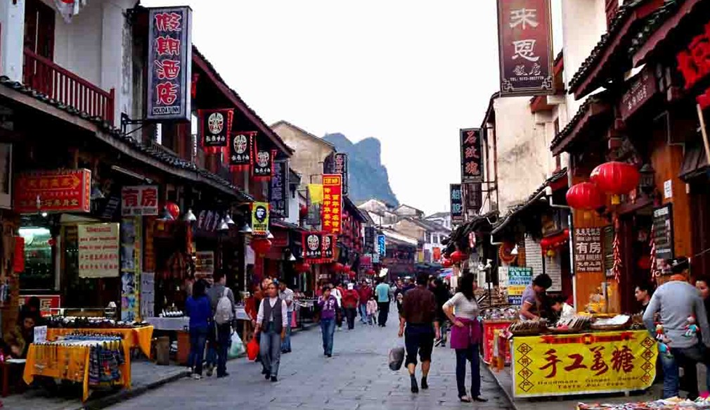 陽朔不僅田園風光如詩如畫,文化遺產也十分豐富,古建筑、古橋梁、名人紀念地摩崖石刻等,點綴于山水間。最有名的要數陽朔古老的石板街--西街,街中有眾多的工藝品店、書畫店、旅館、咖啡廳、酒吧、中國功夫館,這里也是洋人聚集最多的地方,其中外國人在此開店就有20多家,被稱為洋人街。由于西街男女老少都能說外語,故又把西街喻為"地球村",而且是中外新聞媒體關注的熱點,每年接待的中外游客達150萬人次之多。總之,處處是景的自然風光,古樸清秀的田園景致,驚絕天下的溶巖奇觀,難以忘懷的“洋人”西街,陽朔之行絕對讓你別有一番驚喜!