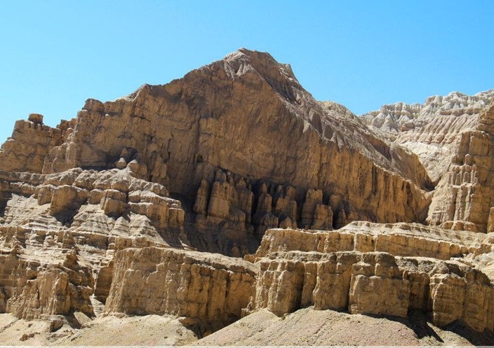 扎達土林面積達數百公里之闊,其地貌在地質學上稱河湖相。專家考證,一百多萬年前,扎達到普蘭之間是個方圓500多公里的大湖,喜馬拉雅造山運動使湖盆升高,水位線遞減,逐漸沖磨出“建筑物”惟妙惟肖的形狀與層高,數十萬年風雨的侵蝕,猶如神工鬼斧不間斷的雕琢打磨,更使他玲瓏剔透出神入化。