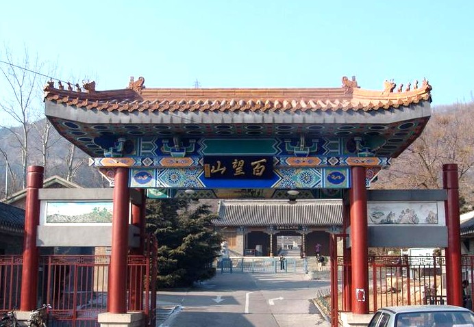 《長安夜話》有云:“百望山南阻西湖,北通燕平。背而去者,百里猶見其峰,故曰‘百望’”。百望山屬太行山余脈,是太行山延伸到華北平原最東端的山峰,故有“太行前哨第一峰”的美稱。百望山又名望兒山。因山下有兩個村莊東北望(旺)、西北望(旺)而得名。傳說楊六郎與遼兵曾在山下大戰,佘太君登山觀戰為六郎助威,因此又叫“望兒山”,保留有佘太君廟、教子臺等遺跡。望兒山海拔210米,是太行山山脈延伸華北平原最東端的一個山峰。登高遠望,東面是現代化的樓群,山后則是林網密布,十里麥香。一九三七年,百望山爆發了黑山扈抗日戰斗。由中國共產黨地下工作者領導的國民抗日軍與日軍英勇搏斗,擊落敵機一架,打死日軍多人。為了紀念此次戰役,楊成武將軍題寫“黑山扈抗日戰斗紀念碑”,勒石成碑,鑲嵌在百望山頂望京樓內。它是對廣大青年、學生進行愛國主義教育的真實史料。