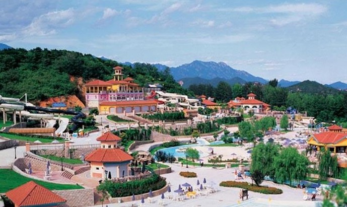 湖景水上樂園是中外合資興建的一個大型戶外游樂項目,依山傍水,占地面積約100000平方米,位于風景秀麗的懷柔雁棲湖附湖西側,是目前北京地區最新的大型水上樂園。其建筑設計及裝修全部以加勒比風格為主線、匠心獨具,使整個樂園充滿了濃郁的熱帶風情,給游客一種耳目一新的感覺。