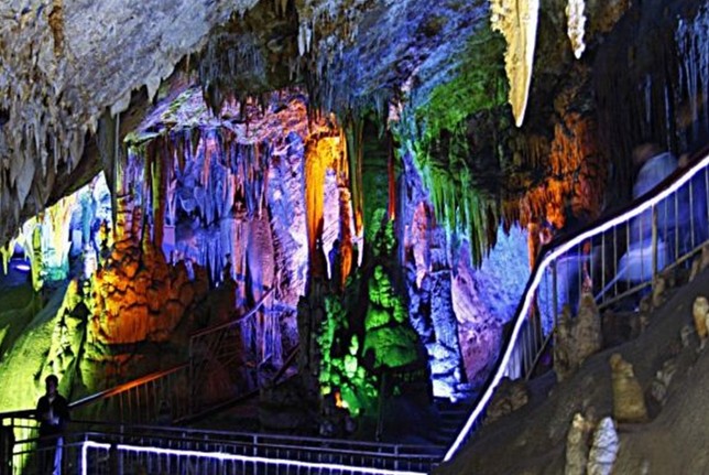 午時(shí),山 里的太陽(yáng)火辣辣的照在山間的小路上背著鑿石工具的他一步一步的在山溝向上爬行,往返山下幾里山道,已使他走的通體出汗,然而爬到上午離開的石縫處,涼氣又使得他渾身感到舒暢,這更加了他的好奇感和急切的欲望,他顧不上滿頭的汗水和往返的疲勞便掄鐵錘握鑿的在凹處乒乒乓乓地干了起來,從中午鑿到天黑,晚上借著月光也不休息的干到天亮,第二天從早上干到中午,一個(gè)桶口粗的圓圓的洞口終于被他堅(jiān)韌的毅力鑿開了。他顧不上饑餓和疲勞,順著洞眼鉆了進(jìn)去,穿過薄壁洞口,里面黑漆漆的好像有很大空間,他向里面爬著,爬著,就連鞋子蹭地都發(fā)出嗡嗡的聲響,而且風(fēng)更大了,他感到周身舒適。他摸索著洞壁繼續(xù)向里爬,大約過了個(gè)把時(shí)辰,也不知道爬進(jìn)了多遠(yuǎn)。突然,他眼前有一點(diǎn)點(diǎn)熒光越聚越大,把他的眼前照的熒熒發(fā)亮,版權(quán)所有山東聊城聊之旅國(guó)際旅行社有限公司,轉(zhuǎn)載必究!他發(fā)現(xiàn)自己已經(jīng)置身于一個(gè)很大很大的洞穴之中。