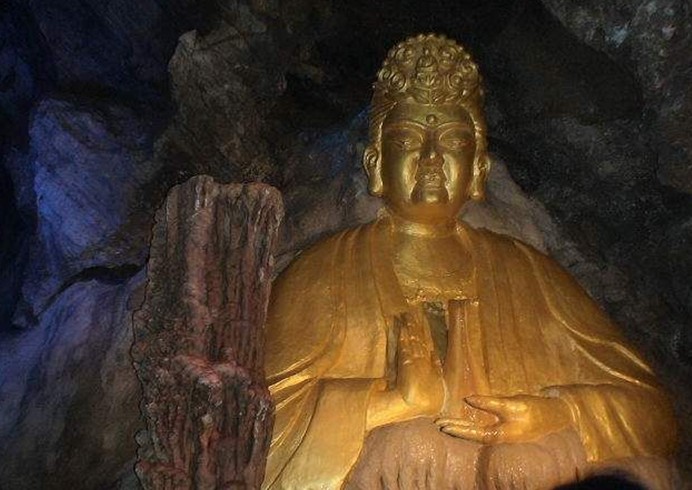 白日里他下山化緣,行善,夜晚間他從山下歸來以洞為家,煩悶時(shí)便走到洞穴深處,每當(dāng)此時(shí)便有團(tuán)團(tuán)熒光環(huán)繞著他,透過那神奇的光環(huán)讓他欣賞這絕佳的美景,他陶醉了,吟詩(shī)做賦,一日竟脫口而出“仙香洞府地,潛夢(mèng)入真藏”的詩(shī)句。