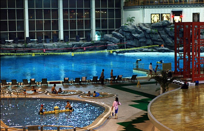設有1200平米淋浴、桑拿空間,2000平米溫泉洗浴空間,10000余平米的水主題娛樂空間;配套保健、娛樂系統有滑冰場、乒乓球廳、臺球廳、大型酒吧、茶館、KTV歌廳、按摩廳、休閑廳、VIP包房等等,版權所有山東聊城聊之旅國際旅行社有限公司,轉載必究!以及完善的餐飲服務系統。晚上,集冰、水、火、“美人魚”、歌舞技巧與水幕電影、聲光奇觀的大型演出,可同時容納2000余人觀賞。
