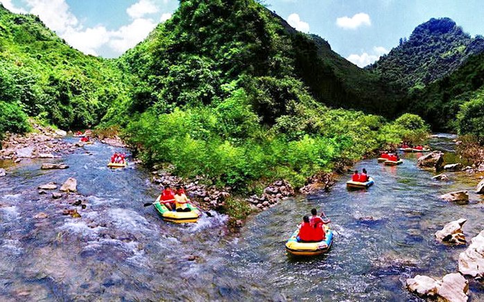 整個(gè)河流沿岸,山勢(shì)起伏、雄偉壯觀,植被及地貌類型豐富,游客在漂流過程中還可以領(lǐng)略險(xiǎn)峰絕壁,可見空中鸛鳥飛翔,河面鴛鴦戲水,水下魚蝦飛躍,一幅世外桃源的優(yōu)美畫面。