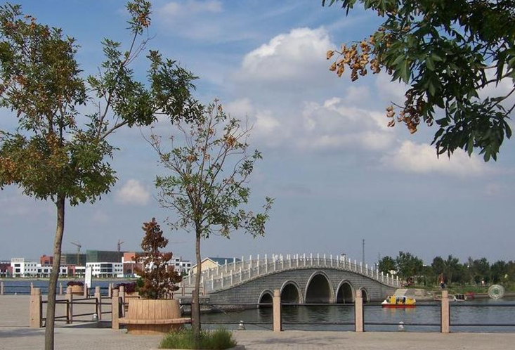 清風湖公園占地2690畝,湖面水體面積1200畝,以黃河文化為主題,在建設風格上,吸收借鑒了西方園林和中國古典園林的設計手法,力求中西合璧,用現代手法來表現傳統建筑。