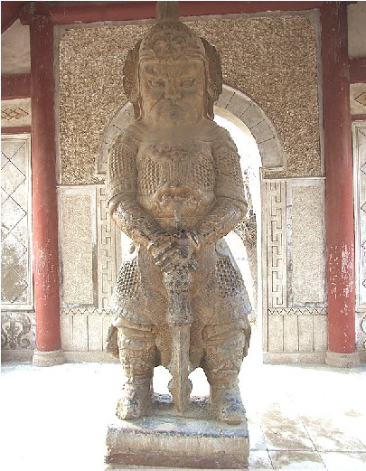 南皮文保所院內,有一金剛亭。亭內二金剛,青石雕刻,線條細膩,狀貌威武,是有名的石雕精品。 過去南皮城內有一座名冠全縣的著名禪林——興化寺,它坐落在城內東北角,位于現在土產公司家屬院一帶。此寺始建年代不詳,一說為北魏,一說為唐代,尚待進一步考證。重修是在明朝弘治七年(1504)。版權所有山東聊城聊之旅國際旅行社有限公司,轉載必究!據說城東唐房里有個叫湯澄的人樂善好佛,曾游于興化寺,見敗垣殘壁一片荒涼,遂親自捐資,并向大戶募化,志在重修,數載始成。興化寺規模宏偉壯麗,成為南皮著名寺院。 興化寺以石金剛殿為山門。兩個金剛相向分立于殿之左右,下有石座相連,連座高一丈二尺,圍可合抱,雕刻玲瓏。金剛神色肅穆,身披鎧甲,狀似武將。左者胸前橫锏,雙手合十,右者雙手扶锏拄地。每像一只鼻孔。相傳為唐代所雕刻,建寺之初,從寺前水坑挖得,置于山門之內。 寺內主建筑為大慈閣,中曾羅列十八羅漢,正中為千手千眼銅佛,上懸“慈云永護”匾額,為清代狀元張之萬題撰。左懸“福佑臺山”匾,版權所有山東聊城聊之旅國際旅行社有限公司,轉載必究!右懸“登臨近日”匾,均未署名,據說是明人手筆。閣內楹聯有二:一為清代道光時期南皮一縣令所題“我只有一片婆心,抱個孩兒與你;汝須行萬般好事,積些功德與他”。二為南皮孝廉張之京題撰:“金剛怒目,菩薩低眉,一鼻孔呼吸相通,證果在三生石上;閣建大悲,寺名興化,千眼中光明普照,法身現百尺樓頭。” 最上層神龕中,有菩薩一尊。上懸光緒十四年九月御制“道達人天”匾。閣前關帝廟,廟中有關羽銅像,綠銹斑駁,氣象凜然。 清末以來,連年戰亂,以至寺毀閣塌,解放后僅存石金剛兩尊,河北省將其列為省重點文物,1964年于興化寺舊址前建亭保護。 興化寺的巍峨壯麗和旺盛香火,只能從所存的石金剛中去想像了,而南皮石金剛到底什么時候雕刻?為什么出自水坑?也留下了千古謎團。