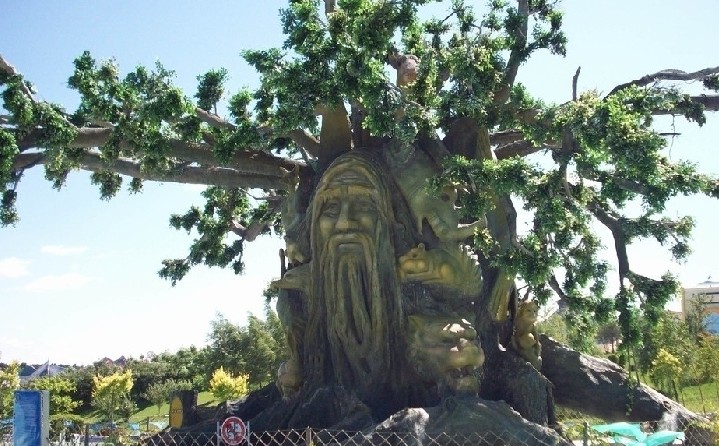 神秘古樹象征著人與自然和諧共處的神秘古樹,其實(shí)蘊(yùn)藏著一段感人的傳說…… 久遠(yuǎn)前,這里曾是一片山谷與密林,所有的動(dòng)物都和諧地生活著。但這里每隔一定的年頭就會(huì)發(fā)生自然災(zāi)難,山上的石頭會(huì)迸裂開來,洪水噴涌而過,幾乎吞走所有動(dòng)物。年長(zhǎng)的動(dòng)物為了躲避災(zāi)難保護(hù)子孫,尋找到一棵幾千年依舊挺拔茂盛、不畏災(zāi)難的古樹。當(dāng)災(zāi)難爆發(fā)時(shí),動(dòng)物們都環(huán)抱著古樹,期望依靠古樹的力量抵御洪水的沖擊。年長(zhǎng)的動(dòng)物們卻用自己的血肉之軀緊緊的包圍著古樹與子孫,寧可粉身碎骨也抵抗著迸裂的山石。山洪愈加洶涌,為了組成這個(gè)嚴(yán)實(shí)的“保護(hù)墻”,無數(shù)的動(dòng)物長(zhǎng)輩獻(xiàn)出了生命,更有無數(shù)的年長(zhǎng)動(dòng)物補(bǔ)充上去。