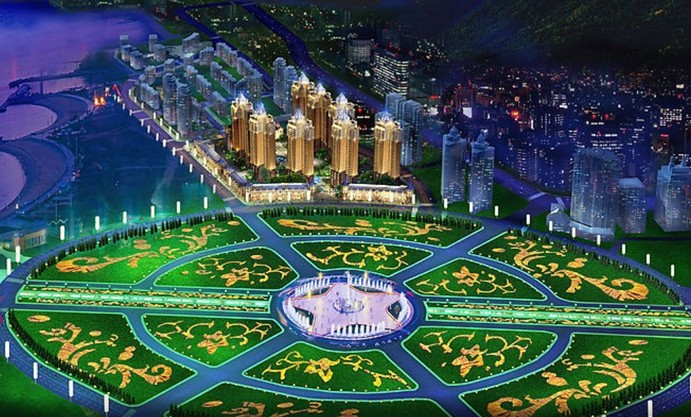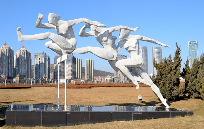 環(huán)繞廣場周圍的是大型音樂噴泉,從廣場中央大道中心點北行500米是會展中心,南行500米是藍色的大海,中央大道紅磚鋪地,兩側(cè)綠草如海。星海廣場背倚都市,面臨海洋,令人倍感心曠神怡。