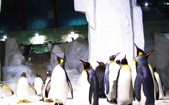 3.南極企鵝島——圣亞“兩大王牌”之一,中國(guó)最大南極企鵝基地,有近百只白眉企鵝和王企鵝。