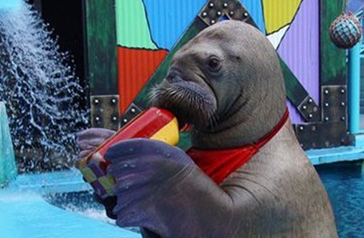 2.《功夫海象》表演——圣亞“三大表演”之一,海象海獅主演,國(guó)內(nèi)唯一能模仿邁克爾•杰克遜跳舞的功夫海象,風(fēng)格幽默搞笑,游客可參與互動(dòng)。