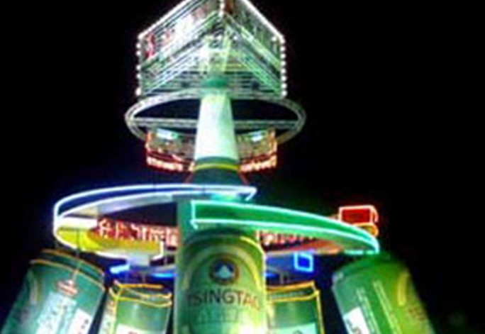 廣場南側為啤酒宮區,兩座大型建筑造型奇特。這里平時就游人不斷,節慶期間,美食娛樂、飲酒大賽、時裝表演等活動繽彩紛呈,人流如潮。在首席食府內,啤酒廠家還專設微型啤酒生產線,游人在品嘗生產線釀制的生純啤酒時,還可觀賞啤酒生產全過程。北側的游園中廣植名花奇樹,并以雕塑點綴其中。東西兩側為啤酒博覽區,布滿啤酒街市,來自國內外的名牌啤酒及美食薈萃于此,深得游人青睞。