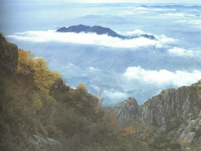 我們從小魚山的大門抬階而上,看到的這個亭子是一個挑檐式的六角亭,在亭內可以把碧波蕩漾的匯泉灣一覽無余,故得名“碧波亭”。“碧波亭”的匾額“碧波”二字是由著名的國畫藝術大師吳作人手書的。大家看遠處的山上有三棟紅色蘑菇樓宛如三柄熊熊燃燒的火炬,那是青島市十大山頭公園之一的信號山公園。在半山腰綠樹叢中的那棟別具特色的建筑是青島市迎賓館,原是“德國總督府官邸”。我們再由“碧波亭”拾階而上,站護欄邊可以看到右下邊有兩幢民族式建筑,一座形如城樓,一座貌似宮殿,那就是青島市海產博物館。