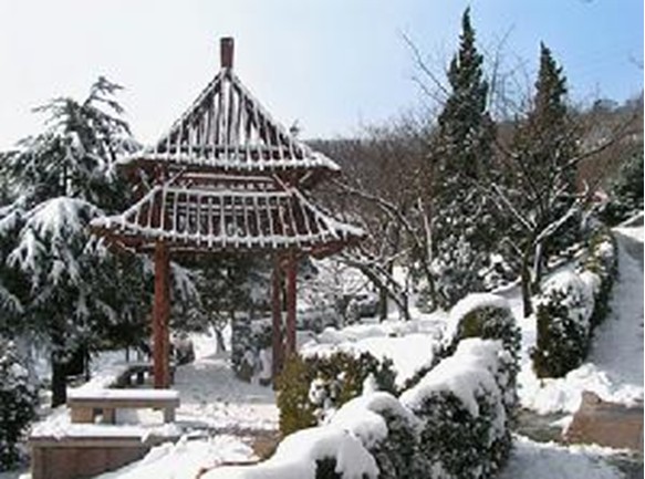 沿園中石砌游路或乘坐太平山索道,可從地面或空中觀賞植物園的優美景色。山南坡是挺拔蒼翠、郁郁蔥蔥的雪松林。西坡是花木的主要繁殖基地,這里有許多國家的名貴花木,有一些還是瀕危品種。半坡上有一片櫻花盛開的大花園。山腳下的耐冬園里耐冬苗木蔚然成林。暖春時節,紅艷艷的花朵堆滿枝頭,與旁邊的白玉蘭相互映襯,常令游人駐足觀賞。