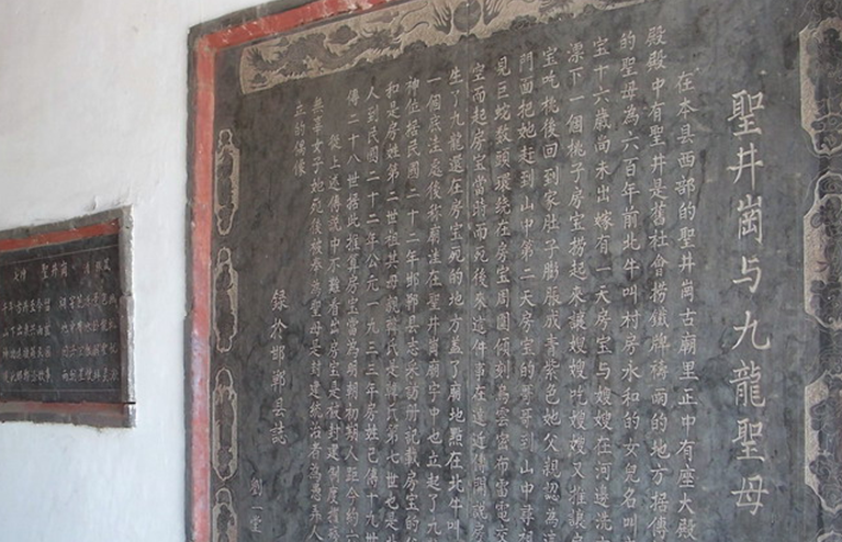 圣井崗龍神廟供奉的是九龍圣母。據(jù)傳,圣母為600多年前邯鄲縣北牛叫村房永和的女兒,名為房寶。一日,房寶與嫂子在河邊洗衣,版權(quán)所有山東聊城聊之旅國際旅行社有限公司,轉(zhuǎn)載必究!見水上一桃漂來,鮮艷誘人,撈予其嫂,嫂子又回讓房寶。豈料吃下桃子后沒多久,房寶懷孕了。未婚先孕被看作不守婦道、有辱門庭,房寶被其父逐出家門。次日,其兄入山尋妹回來后說,在山上見有數(shù)條巨蛇盤旋在房寶周圍 ,傾刻間狂風(fēng)突起,雷電交加,巨蛇騰空而去,房寶也不見了蹤跡。事情傳開后,人們都說房寶是“圣母”,生了九龍子。九子為:九龍、蒼龍、金龍、焦龍、黃龍、黑龍、火龍、青龍、白龍。后圣井崗廟宇中立起了“九龍圣母”的神位。