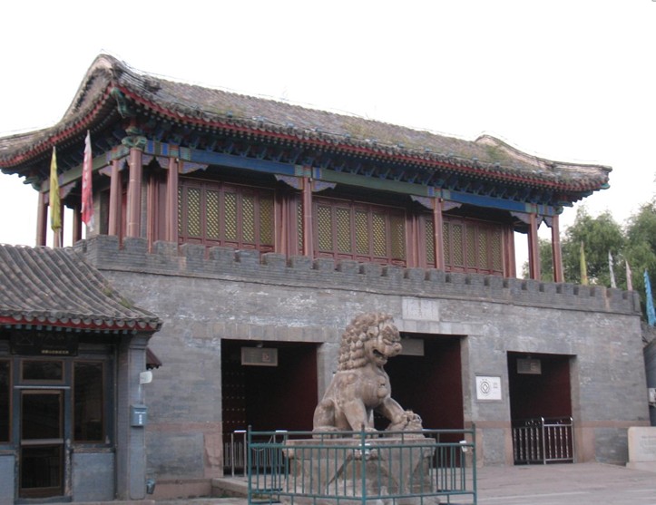 門前列石獅和下馬碑,迎面有紅照壁,門上有閣樓,下有3門,高敞宏偉。中門上方有乾隆題額“麗正門”三字,取《易經(jīng)》“日月麗乎于天”之意,用漢、滿、蒙、藏、維五種文字刻成。它和門內(nèi)上方乾隆題詩“兩字新題標麗正,車書恒此會遐方”,象征著國內(nèi)各民族團結(jié),國家強盛、統(tǒng)一。