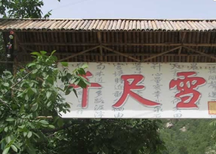 位于山莊文津閣南,為“乾隆三十六景”第二十九景。乾隆十 六年(1751)年,乾隆南巡,見蘇州寒山范氏山園中千尺雪的瀑布,動靜皆宜。后于京城西苑、薊縣盤山靜寄山莊和避暑山莊同時仿建,同名千尺雪。它是將山溪引至山前,利用落差,造出“懸流噴瀑”、“寒光四射、灑然晴晝玉花”效果,此景是以瀑布取名,以聲取景、聽景的典型杰作。