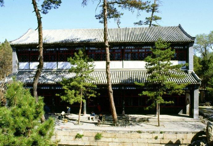 文津閣位于千尺雪景區(qū)之北。建于乾隆三十九年(公元1774年),是內(nèi)廷四閣中第一座建成之閣。乾隆帝對在此建閣貯書極為得意,認(rèn)為“山莊居塞外,伊古荒略之地,而今則閭閻日富,禮樂日興,益茲文津之閣,貯以四庫之書,地靈境勝,較之司馬遷所云名山之藏,豈啻霄壤之分也哉?”加之每年帝王諸臣、各族首領(lǐng)和外國使節(jié)都云集山莊,將皇家藏書樓建在此地,更可以標(biāo)榜天朝的文治武功。文津閣內(nèi)原藏《古今圖書集成》萬卷、《御制詩》四集,1785年《四庫全書》也曾收藏于此。辛亥革命后,《四庫全書》運往北京圖書館,《古今圖書集成》早年已被軍閥盜賣凈盡。