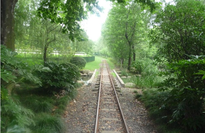 原址位于公園西門南側(cè),軌長(zhǎng)僅300米,建有站臺(tái)、售票房、模擬動(dòng)物等景點(diǎn),投資56萬元。1993年集資90萬元,由中華造船廠負(fù)責(zé)施工,將軌線延伸至園內(nèi)各景點(diǎn),全長(zhǎng)約2公里,中途增設(shè)站臺(tái)4座,