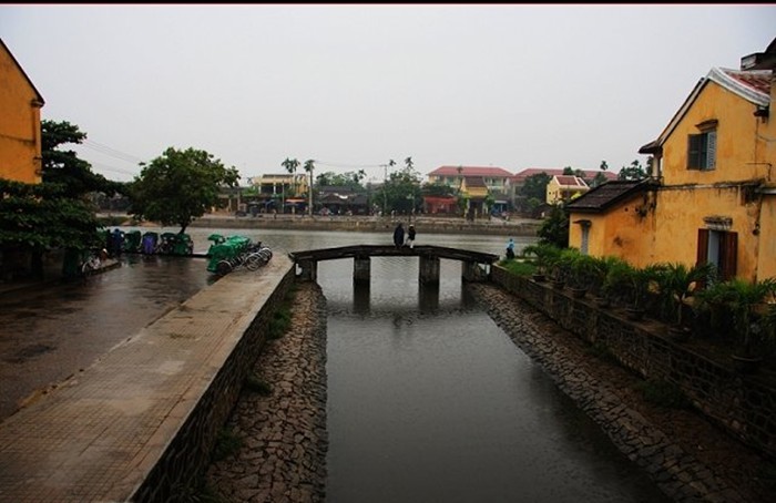 會安的建筑群突出體現了民族文化相互給合,同時也作為亞洲傳統國際商港遺址被保護起來。這些建筑中最著名的是一座日本風格的帶頂石橋。石橋始建于猴年(1593年)完工于狗年(1595年),所以橋西邊盡頭有兩尊精美的狗的雕像,東邊盡頭則有兩尊猴子雕像。