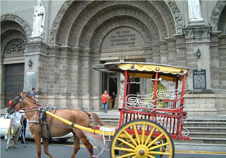 馬尼拉還有一些著名街道,也是旅游者觀光的地方,阿亞拉街原是西班牙財閥阿亞拉的私有土地,經過多年的不斷擴建發展成為今日繁榮的商業中心。這里集中了許多公司、餐廳、商店、電影院和馬尼拉第一流的飯店,馬卡蒂商業中心、帕爾大廈和不少外國大使館也在這個地區。埃斯柯達大道在巴石河的北側,從西班牙統治時期起,就是一條繁榮熱鬧的街道,兩旁商店、餐廳林立。黎剎爾路是一條電影院和商店集中的繁華街道,在其后方是古老的唐人街--王彬街。王彬本是個華僑印刷工.在參加菲律賓人民反抗西班牙殖民統治中有過功勞,因此,菲律賓人民及這里的僑胞一直紀念著他。唐人街是一條以石塊鋪成的狹窄街道,兩旁布滿了中國商店,大部分都有中文招牌。店面之上是小巧玲瓏的騎樓,其街景很像我國舊時廣州的格調,街口立有紀念中菲友誼的一座牌樓,還有一尊華僑王彬的銅像。觀光的馬車來往奔馳,使整個“中國城”生氣盎然。