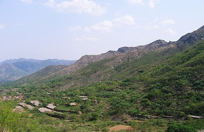 摩訶山北有大谷,東有回路峪,版權(quán)所有山東聊城聊之旅國際旅行社有限公司,轉(zhuǎn)載必究!為黛溪河的兩條主要源流,其源頭皆出于摩訶山中。摩訶山以東諸峰連綿,有種金頂、水尖頂、圍子頂?shù)取禹斏嫌幸皇瘔Γh(huán)似城,相傳為太平天國時(shí),當(dāng)?shù)剞r(nóng)民躲避官軍之所,圍子頂亦由此名。摩訶山北有象山、四尖山,西有黌堂嶺,山北麓有醴泉寺及范文正公讀書處。