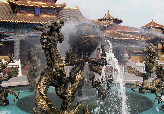 風(fēng)景區(qū)由民俗寨、水竹寨、平安寨、隱士寨、東夷古寨、將軍寨、紅云寨、磴山寨、旺里寨九寨組成: 第一個(gè)景區(qū):水竹寨——經(jīng)過(guò)“人間仙境”大門(mén),進(jìn)入水竹寨,通過(guò)天潤(rùn)亭游覽龍,鳳,龜,蛇,麒麟五瑞雕塑,中華水鄉(xiāng)、千水臺(tái),觀全國(guó)唯一的金瓦金鑾殿、御道過(guò)菏池,看石象、石佛、天外來(lái)客。