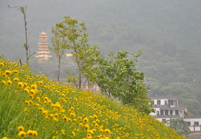 太陽山東南兩面向海,西北兩面環山。南可見海上飄渺前三島(或許是海上三仙山的原型),北可望歷史古港瑯琊臺,碧海藍天,大美不言,山清水秀,靈氣自生,四方清靜,八面臨風,山海天一覽無余,大千之美盡收眼底。