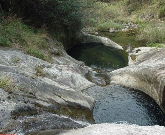 九井溝旅游風景區,位于皖、鄂、贛三省交界處的安徽省宿松縣隘口鄉原龍王村境內,現已改名為九井溝村。屬大別山余脈,總面積36.72平方公里。這里既有峰峻石奇、峽谷幽深、水滴石穿的泉中九井和形神兼備的仙女浴池、淋漓波光的雷公潭、白練飛瀉的三疊瀑布,又有嘆為觀止的"石破天驚"、驚奇怪態的千年羅漢松,還有那至今尚無一人敢窺其顏、敢探其險的龍和大峽谷。