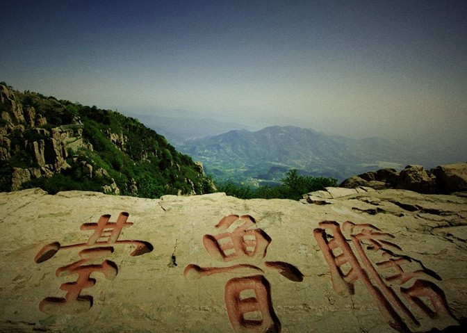 瞻魯臺位于日觀峰南側,石梁突兀,平展如臺,臺上有巨石,上刻“瞻魯臺”三大字,寓意在此可遠瞻魯國曲阜。