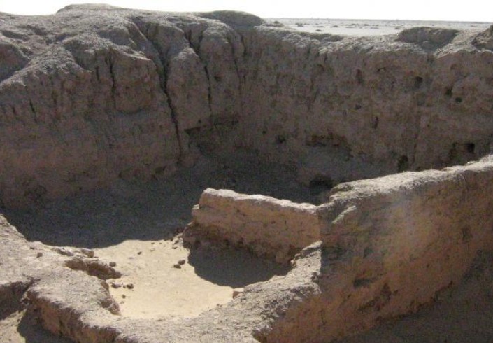 甲渠候官遺址俗稱破城子,位于額濟納旗南24公里,納林、伊肯河之間的戈壁灘上。為漢代居延都尉西部防線甲渠塞之長——甲渠候駐所。發掘前,遺址大部分為砂礫掩沒。往西300米,南北排列“一”字形烽燧和雙重塞墻遺跡。障塞為一土坯方堡,基方23.3平方米,厚4—4.5米,殘高4.6米,結構為由三層土坯夾一層芨芨草筑成,草層間距45厘米。