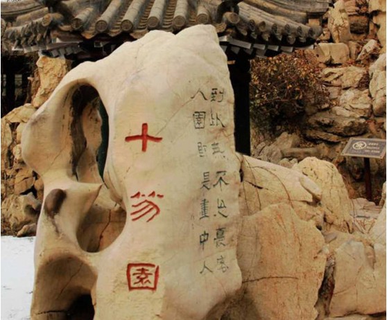 張瑞圖(公元1576-1641年),明末福建晉江人,天啟六年(公元1626年),晉禮部尚書兼東閣大學士入參機務。時魏忠賢用事,忠賢生祠碑文,多出其手書。崇禎初罷去。定逆案,贖徙為民。善畫山水,工書法,與米萬鐘、董其昌等齊名。有《白毫庵集》。園中石刻內容為:一夜春雨過,版權所有山東聊城聊之旅國際旅行社有限公司,轉載必究!千畦盡成綠;不曉意所欣,道是齋廚足。