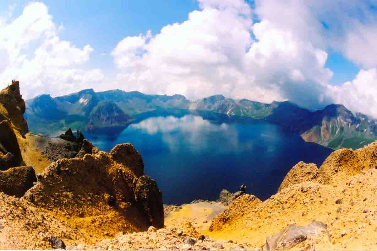 長白山天池位于長白山主峰火山錐體的頂部,是一座火山口,經(jīng)過漫長的年代積水成湖。長白山天池海拔2189.1米,比新疆維吾爾自治區(qū)的天山天池高209米。天池略呈橢圓型,南北長4.4公里,東西寬3.37公里。集水面積21.4平方公里,水面面積9.82平方公里,水面周長13.1公里,平均水深204米,最深處達(dá)373米。總蓄水量20.4億立方米。天池水溫為0.7°C——11°C,年平均氣溫7.3°C。天池像一塊瑰麗的碧玉鑲嵌在雄偉的長白山群峰之中,它是中國最高最大的高山湖泊。是東北三條大江——松花江、鴨綠江、圖們江的發(fā)源地。柔美的天池白云繚繞,五色斑斕波光嵐影,群峰環(huán)抱,蔚為壯觀。天池上空氣候多變,多云、多霧、多雨、多雪,云、霧、雨、雪把天池不僅裝點得美麗動人,而且更加虛幻神秘,迷迷茫茫。尤其盛夏季節(jié),風(fēng)雨不定,變化頻繁,有時一日之內(nèi),甚至一小時之內(nèi)就可能發(fā)生幾次變化,剛剛還是驕陽直射、焦灼烤人,忽然間狂風(fēng)大作、黑云滾滾、電閃雷鳴,大雨傾盆,山峰、湖面傾刻間淹沒在風(fēng)雨之中了……一會又風(fēng)和日麗,山峰、湖面又重新展露出來。雨后天池景色格外迷人,池邊群峰競秀,山野如洗;池上霞光萬道,長虹當(dāng)空;池中奇峰倒映,波光粼粼。天池上空經(jīng)常云霧繚繞,置身其中使人頓覺騰云駕霧一般,白云在腳下飄逸。給人一種神秘莫測、飄飄欲仙的美感。有時還會出現(xiàn)池東日出池西雨,山上大雨,山下晴的奇異景觀。