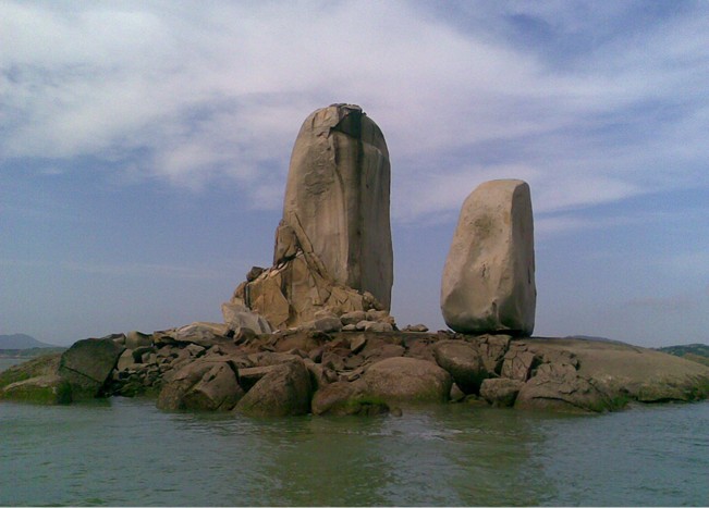 從看澳村岸邊坐渡船,十幾分鐘就到達(dá)礁石上,礁石底部是一組平坦完整的巖石。兩個(gè)石柱均由粗粒灰白色的花崗巖組成 東側(cè)的一個(gè)高達(dá)33米,胸寬9米,厚8米;西側(cè)的一個(gè)高17米,胸寬15米,厚8米。版權(quán)所有山東聊城聊之旅國(guó)際旅行社有限公司,轉(zhuǎn)載必究!兩個(gè)石柱的底部都是近似四方形體,直立在礁石上。據(jù)地質(zhì)學(xué)家考證是世界上最大的花崗巖球狀風(fēng)化海蝕柱。由于它的奇特壯觀,對(duì)游人有著強(qiáng)烈的震撼力和吸引力。建設(shè)部與中科院的專家稱之為:“壟斷性的世界級(jí)旅游資源。”明代旅行家陳第曾譽(yù)之為“天下奇觀”, 清朝女詩(shī)人林淑貞詩(shī)贊:“共說(shuō)前朝帝子舟,雙帆偶趁此句留;料因濁世風(fēng)波險(xiǎn),一泊于今纜不收.