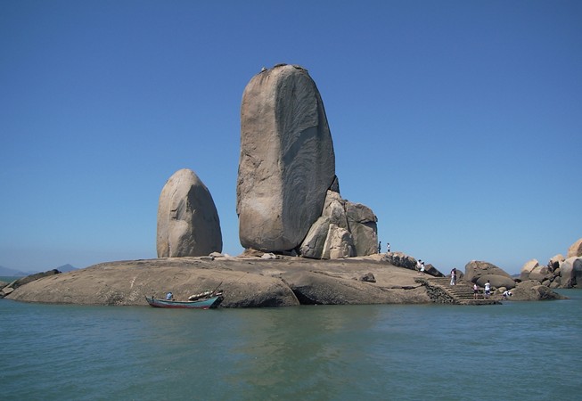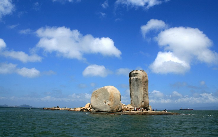 從看澳村岸邊坐渡船,十幾分鐘就到達(dá)礁石上,礁石底部是一組平坦完整的巖石。兩個石柱均由粗粒灰白色的花崗巖組成 東側(cè)的一個高達(dá)33米,胸寬9米,厚8米;西側(cè)的一個高17米,胸寬15米,厚8米。版權(quán)所有山東聊城聊之旅國際旅行社有限公司,轉(zhuǎn)載必究!兩個石柱的底部都是近似四方形體,直立在礁石上。據(jù)地質(zhì)學(xué)家考證是世界上最大的花崗巖球狀風(fēng)化海蝕柱。由于它的奇特壯觀,對游人有著強烈的震撼力和吸引力。建設(shè)部與中科院的專家稱之為:“壟斷性的世界級旅游資源。”明代旅行家陳第曾譽之為“天下奇觀”, 清朝女詩人林淑貞詩贊:“共說前朝帝子舟,雙帆偶趁此句留;料因濁世風(fēng)波險,一泊于今纜不收.