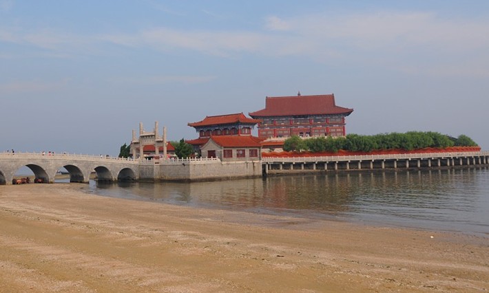 位于海水浴場東側(cè)海中,西與蓬萊遙遙相望的八仙渡海口,是根據(jù)八仙過海神話傳說填海新建的景區(qū),填海面積3.3萬平方米,如果從空中俯視恰似丫腰葫蘆一般。游龍起伏脊的南部外墻,龍首位于正門兩側(cè),墻體內(nèi)側(cè)嵌有諸神如甲子神、日游神、夜游神及生肖圖案等漢白玉浮雕70余方。景區(qū)內(nèi)建有民族風(fēng)格古典式建筑的大型八仙過海漢白玉照壁、流軒、挹清軒、八仙祠、三星殿、財神殿、放鶴亭、環(huán)形步廊等。