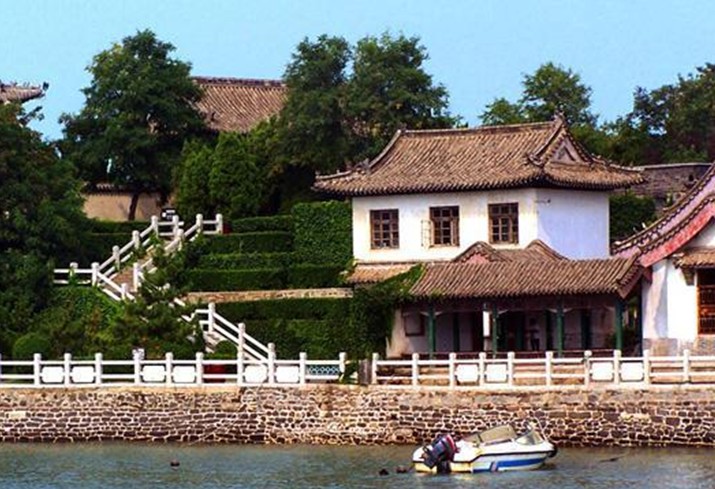 水城,港灣俗稱小海,居城中,呈長袋形,是水城的主體,為操練水師與泊船之所(圖1),寬度平均約100米,南北長655米。水深隨潮汐而變,最低時約3米多。平浪臺,迎水門而立,外設防波堤,長約80米。小海沿岸以塊石砌筑碼頭,寬 5~10米,供船只停靠。航海燈樓為清同治七年 (1868)增筑,1958 年重修,磚石結構,六角,尖頂,高11.6米,內設扶梯可供攀登,上設燈亭以為導航。版權所有山東聊城聊之旅國際旅行社有限公司,轉載必究!燈樓高踞丹崖山上,臨崖修筑,拔壁參天,今仍可實用。