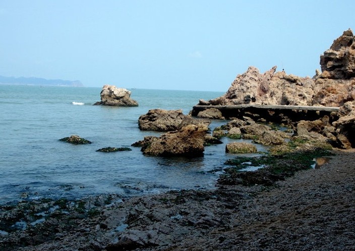 山上建有燈塔,它與旅順老鐵山燈塔的連線即為黃、渤二海分界線,因此具有“一山分二海”的獨特地理地位。田橫山海拔72米,東南與丹崖山相聯,巖石亦呈赭紅,屬震旦紀含鐵石英巖。遠觀,同樣具有“水碧山紅”的丹崖景致特點。東、北、西面懸崖陡峭,拔海千仞,形勢險峻。山陰因受浪濤沖刷,巖破石穿,怪石鱗峋,鬼斧神工,形態各異,有八仙石、臥牛石等石景,于山巔海闊天高閣覽勝,海天遼闊,天風浩蕩,盡收山海之勝。憑欄佇立,觀海聽濤,思古撫今,別有一番情趣。