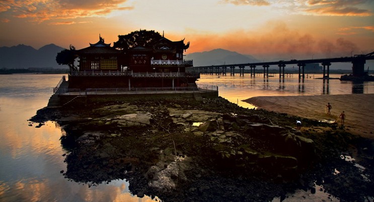 福州金山寺福州金山寺位于福州市西郊洪塘村附近烏龍江上,建于宋代,是福州唯一的水中寺,金山寺原是江心的小石阜,因為它的形狀象石印浮于水面,早在宋代當地人就在這石埠上建了一座寺廟,因為很像鎮江的金山寺,故取名小金山寺。據《洪塘志》記載:“金山江心矗起,形象印浮水面,似江南鎮江,故曰小金山。有塔七級,故曰金山塔寺。”