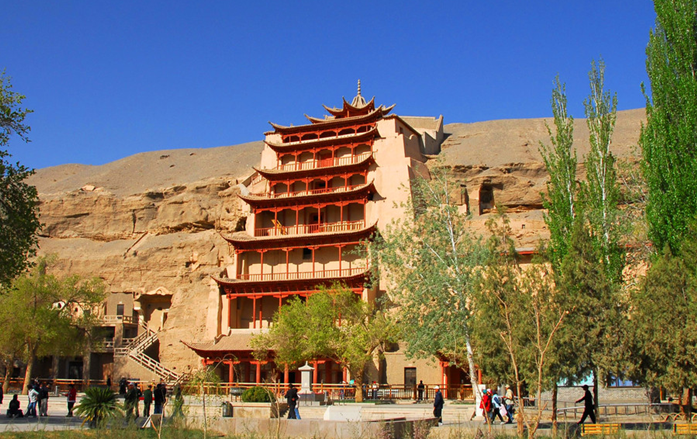 莫高窟地處絲綢之路的一個戰(zhàn)略要點。它不僅是東西方貿(mào)易的中轉(zhuǎn)站,同時也是宗教、文化和知識的交匯處。莫高窟的492個小石窟和洞穴廟宇,以其雕像和壁畫聞名于世,展示了延續(xù)千年的佛教藝術。