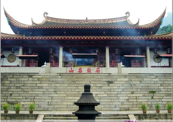 石鼓名山坊新建于1972年,各路游人匯集于此,即可進入山門,但有一事奇怪,無論是步行,乘車還是坐纜車,即使進了山門,沿途都看不到規模宏大的涌泉寺蹤影。原來,這是涌泉寺獨特的建筑構思。整個寺院依山度勢,建在白云峰的頜處。堪輿行家稱為“燕窩穴”。全寺藏而不露, 素有“進山不見寺,進寺不見山”之稱。