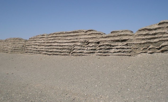 敦煌漢塞沿疏勒河南岸,由東向西延伸。西漢的塞墻止于疏勒河下游榆樹泉盆地東側的馬迷兔,在現敦煌市境內長約 145公里,其間有大、小方盤城和馬圈灣等烽燧遺址,一般保存較好。塞墻構筑多因地制宜,就地取材。在湖灘、沼澤地區,塞墻多先以蘆葦束作框架,內填砂礫,再平鋪蘆葦層,如此層層疊壓而上,底寬約 3米,頂寬約1.5米,現存最高者約3.75米。戈壁地區多產紅柳,則以紅柳枝束為框架,筑法與蘆葦作材料者相同。