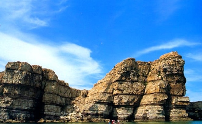 這一堆奇異的島嶼在版圖上被稱為廟島群群。1945年8月這里被解放,即被命名為長山列島,簡稱長島。南山島是長島最大的島,陸地面積有12.8平方公里,是縣政府駐地。與南長山島緊緊相連的是北長山島,著名的游覽中心月牙灣、九丈崖公園都在北長山島。
