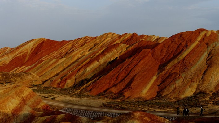 張掖丹霞地貌位于甘肅省河西走廊中段的張掖市,古為河西四郡之一張掖郡,取“斷匈奴之臂,張中國(guó)之掖(腋)”之意。張掖丹霞地貌在方圓一百平方山地丘陵地帶,有造型奇特,色彩斑讕,氣勢(shì)磅礴的丹霞地貌。丹霞是指紅色砂礫巖經(jīng)長(zhǎng)期風(fēng)化剝離和流水侵蝕,形成的孤立的山峰和陡峭的奇巖怪石。這里的丹霞地貌發(fā)育于距今約200萬(wàn)年的前侏羅紀(jì)至第三紀(jì)。