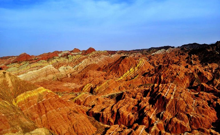 張掖丹霞地貌8月被《圖說(shuō)天下•國(guó)家地理》編委會(huì)評(píng)為“奇險(xiǎn)靈秀美如畫——中國(guó)最美的六處奇異地貌”之一。 張掖丹霞地貌分布廣闊,主要分布在臨澤、肅南兩縣,面積300多平方公里,是中國(guó)丹霞地貌發(fā)育最大最好、地貌造型最豐富的地區(qū)之一。