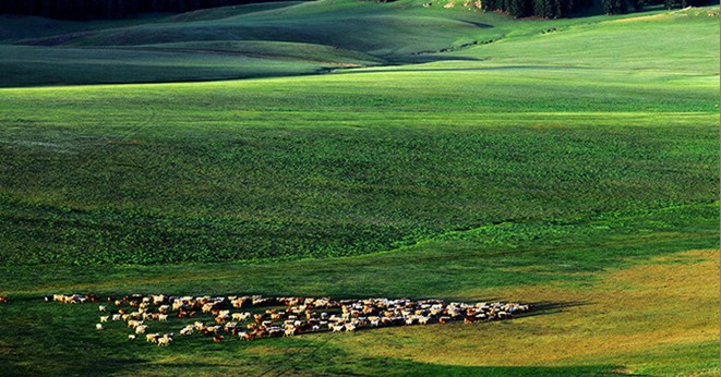 春天的巴里坤草原,冰雪隨著溫暖的陽光漸漸融化。 五月中旬前后,風(fēng)和日麗,小草兒爭先恐后地冒出了頭,在微風(fēng)細(xì)雨的撫慰中漸漸長高。 六、七月份,蝶兒紛飛、鳥兒鳴叫、綠浪翻滾,那可真是風(fēng)吹草低才能見到牛羊啊。這時,你可要當(dāng)心了,你獨(dú)自進(jìn)入草原之中就會迷失方向,除非你的個頭長的比草高。 草原上最熱鬧的要數(shù)八、九月份了:村民們喂養(yǎng)的牲畜的口糧幾乎要全部在大草原里收取,在八月初,你看那草原的四周,人歡馬叫、機(jī)聲隆隆,遠(yuǎn)遠(yuǎn)看去,一座座白氈房猶如雨后的蘑菇破土而出 巴里坤草原上的冬天來的很早,到了10月底,草原已被冰雪覆蓋,草原上沒有行人,沒有牲畜,逐漸恢復(fù)了平靜。