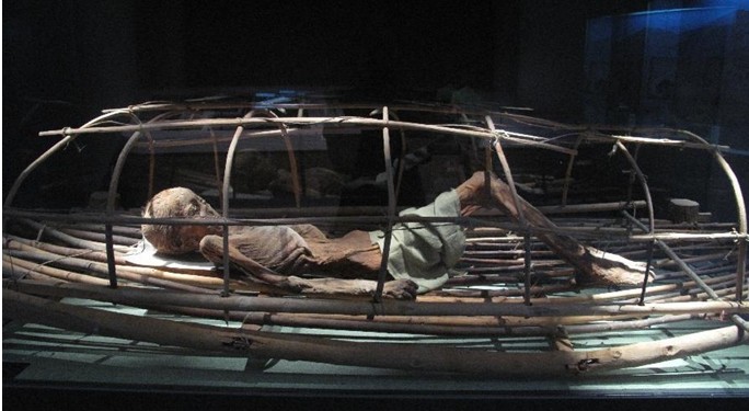 其中吐魯番地區出土古尸陳列廳是最具神秘性和吸引力的展廳。這里展出的11具干尸,從春秋戰國時期至清代時期的古尸,主要出自阿斯塔那—哈拉和卓墓葬群和蘇巴什古墓群、洋海古墓群等。