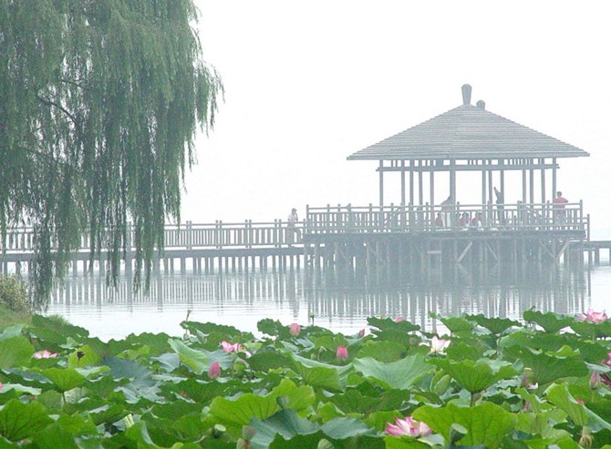 位于環洲懷抱之中,有“櫻洲花海”之譽。洲上櫻桃如火如霞,櫻花飛舞輕揚,長廊九曲回環,廣場碧草如蔭;游人信步綠濤花海之中,心曠神怡,飄飄然如入仙境。然而,誰會想到歷史上玄武湖曾有數次不同形式的“消失”呢?北宋王安石實行“廢湖還田”,使玄武湖消失了兩百多年;到了明初,玄武湖成了皇家禁地----存儲全國戶籍和各地賦稅全書的黃冊庫,雖是世界檔案史上的一大奇跡,玄武湖卻成了一帶禁地,與外世隔絕二百六十多年;隋唐以后,玄武湖漸漸衰落,一度更名。放春草凄凄,空余后湖月,離宮沒古丘,波上嘆洲瀛”。