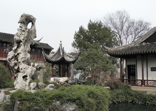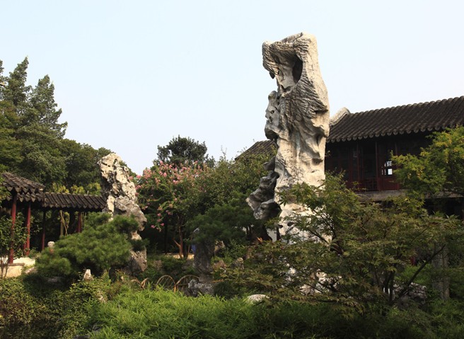 Featuring man-made mountain and lake scenery in the west and garden courts in the east,the middle part of the garden is the original site of the Xu's East Garden and the Liu's Hanbi Villa,and is regarded as the best part of the whole garden. The eastern,northern and western parts are the extensions of the Sheng's Garden. The eastern part is noted for its strangely shaped limestones,the northern part idyllic scenes,and the western part the delights of woody hills.