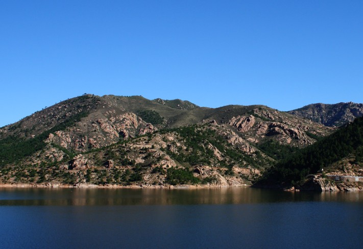 打虎石水庫位于寧城縣西部,老哈河支流 ── 黑里河下游,控制流域面積540平方公里,總庫容1.2億立方米,是內(nèi)蒙古自治區(qū)境內(nèi)的以灌溉為主,兼顧防洪、發(fā)電、養(yǎng)魚、旅游等綜合利用的大型水庫之一,屬水利部一級管理單位。 打虎石水庫橫斷黑里河。由于黑里河水流經(jīng)林區(qū),沿途植被茂密,因此庫區(qū)蓄水含沙量極低,水體蔚藍(lán)清澈。近6000畝的水面坦蕩遼闊,碧波萬頃,水天一色。版權(quán)所有山東聊城聊之旅國際旅行社有限公司,轉(zhuǎn)載必究!每逢盛夏時(shí)節(jié),群山倒影,波瀾不驚,鳥飛魚躍,漁船點(diǎn)點(diǎn),仿佛人間仙境。