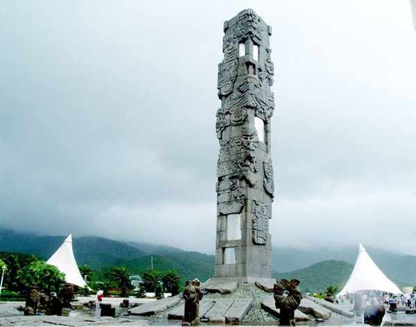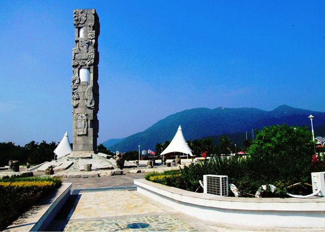 亞龍灣中心廣場(chǎng),位于三亞市東南28公里處。廣場(chǎng)以圖騰柱向藍(lán)天升騰,以雕塑群向大地和大海延伸,其宏偉氣勢(shì)和獨(dú)特的藝術(shù)造型,以有限的藝術(shù)空間形式,引導(dǎo)我們的想象向無限的空間擴(kuò)展。廣場(chǎng)外圍設(shè)計(jì)的五組白色風(fēng)帆式的尖頂帳篷及大型彩色噴泉,給具有古老文化意蘊(yùn)的雕塑增添了現(xiàn)代氣息。